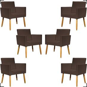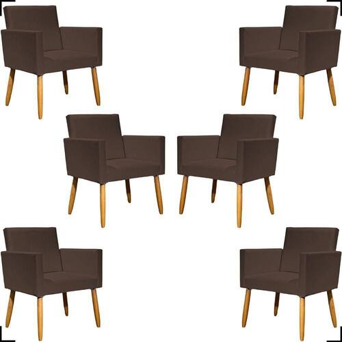 Kit 6 Poltronas Decorativa Para Sala Recepção Consultório Nina Corino Cores Pé Palito 30 Cm Castanho
