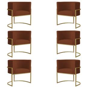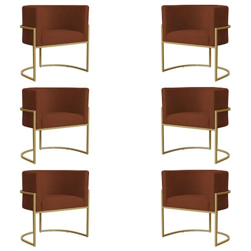 Kit 6 Poltronas Decorativa Sala de Estar Luana Base Gold Suede Terracota - Montanaris Decor - Laranja