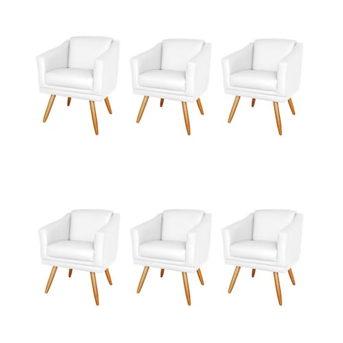 Kit 6 Poltronas Decorativa Sala Recepção Escritório Corino