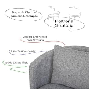 AS IMAGENS SÃO MERAMENTE ILUSTRATIVAS E PODEM SOFRER VARIAÇÕES DE COR E PEQUENOS DETALHES DE ACORDO COM O SEU MONITOR, ILUMINAÇÃO DO AMBIENTE E ATÉ MESMO A SUA PERCEPÇÃO 6 Poltronas Decorativas GiratÃrias Cora em LinhÃo Misto Cinza