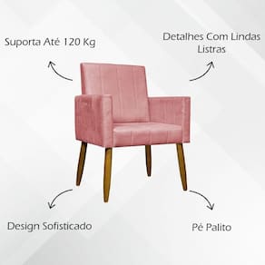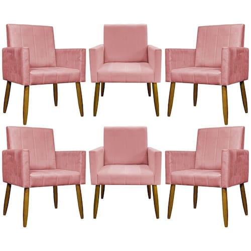 Kit 6 Poltronas Decorativas Para Sala Mari Suede Cores - Rosê, Suede