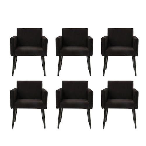 Kit 6 Poltronas Luca Tecido Suede Pé Palito Aberto - Preto - Cor: Preto Kit 6 Poltronas Luca Tecido Suede Pé Palito Aberto - Preto Escolher os móveis para decorar sua casa, pode ser uma das missões mais difíceis. Por isso, a Leali empresa formada por mestres moveleiros para atender a todos os padrões de design, com qualidade e respeito ao consumidor, desenvolveu essa linda peça. Perfeita para transformar sua sala de estar, quarto ou qualquer outro ambiente de sua preferência, a Poltrona Luca leva comodidade, requinte e qualidade ao ambiente, dando um toque todo especial a decoração, combinando design moderno e sofisticação. Produzida com matérias de altíssima qualidade, conta com estrutura em madeira maciça, lindos pés palito de madeira, revestimento em material sintético de alta qualidade que confere durabilidade ao acabamento, além do assento revestido em espuma densidade 26.Tipo: PoltronaModelo: LucaCor: PretoTecido: SuedeDimensões do Produto:Altura: 80cmLargura: 61cmComprimento: 54cmTodos os produtos vão embalados com total segurança.- Montagem será de responsabilidade do comprador. Produto de fácil montagem. Não nos responsabilizamos, no ato da entrega, por subir escadas/elevadores ou transporte por guincho em apartamentos. Eventuais despesas são de responsabilidade do comprador; - Confira antes de comprar as dimensões do produto.ATENÇÃOIMAGENS MERAMENTE ILUSTRATIVAS REALIZADO EDIÇÃO, PODENDO HAVER UMA PEQUENA VARIAÇÃO DE COR DEPENDENDO DE CADA TELA OU MONITOR.Kit 6 Poltronas Luca Tecido Suede PÃ Palito Aberto - Preto Marca: Rud House