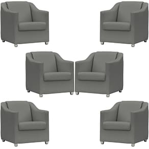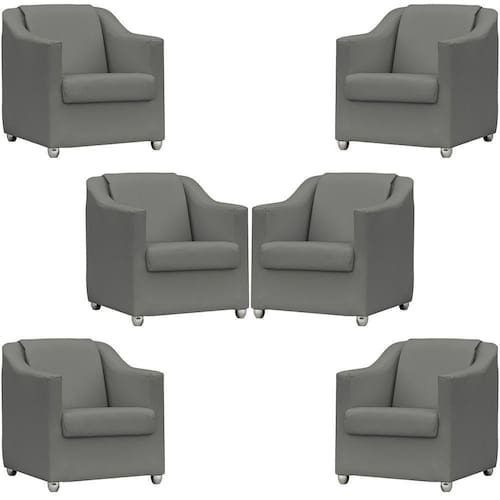 Kit 6 Poltronas Para Sala Mila Corino Cores Pé De Plástico Cromado - Cinza, Corino