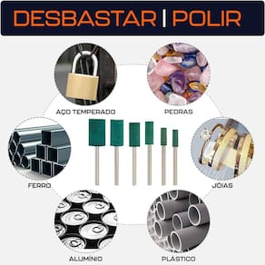 Kit 6 Pontas Montadas 4mm a 12mm Cilíndrica Borracha com Haste 3mm para Micro Retíficas Dremax - Marca: Dremax - Referência: KPM005 - Material: Borracha - Haste das pontas: 3mm - Gramatura: Grão 180 - 1 Ponta Montada Cilíndrica 12mm x 19mm Comprimento 47mm - 1 Ponta Montada Cilíndrica 10mm x 20mm Comprimento 50mm - 1 Ponta Montada Cilíndrica 8mm x 20mm Comprimento 50mm - 1 Ponta Montada Cilíndrica 6mm x 17mm Comprimento 46mm - 1 Ponta Montada Cilíndrica 5mm x 15mm Comprimento 45mm - 1 Ponta Montada Cilíndrica 4mm x 14mm Comprimento 44mm - Pontas montadas de borracha flexível, para retificação e polimento precisos - Uso em micro retíficas de qualquer marca com mandril de 3mm - Indicada para afiação, esmerilhamento e desbaste em metais, joias, pedras preciosas, vidro, entre outros materiais - Seu formato facilita o trabalho em locais de difícil acesso - Garantia: 90 dias contra defeitos de fabricação A DREMAX é a primeira e única marca brasileira dedicada exclusivamente às micro retíficas, acessórios e acoplamentos para esta indispensável ferramenta. Seja para trabalhos de precisão, artesanato, modelagem ou reparos, a DREMAX tem o produto certo para você. Marca: Dremax