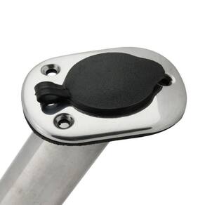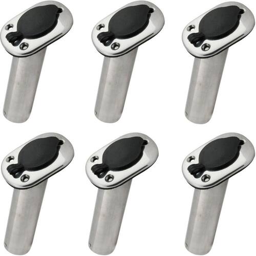 Porta caniço inox inclinado com tampa em nylon 6un Porta vara caniço com 30 graus de inclinação, com tampa em nylon Facilidade e agilidade para sua pescaria em caiaque, barco, lanchas, não prejudica a remada, tendo sempre fácil acesso ao caniço de sua vara de pescar.