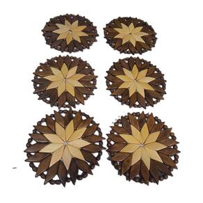 Kit 6 Porta Copos (descanso) Artesanal Redondo Marrom-Marfim