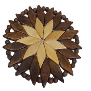 Porta Copos (descanso) Artesanal Redondo Marrom-Marfim confeccionado em madeira, composto por peças pintadas e envernizadas, em duas cores, em formato de losângulo, com acabamento nas bordas.