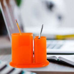 Porta Lápis Duo feito em Plástico Premium PP resistente, com duas cavidades, espaço para cartão de visita, prático, uma excelente opção para organizar lápis, canetas, marcadores e outros acessórios na mesa de trabalho e/ou estudo. Imagens meramente ilustrativas. Marca: Bb Store