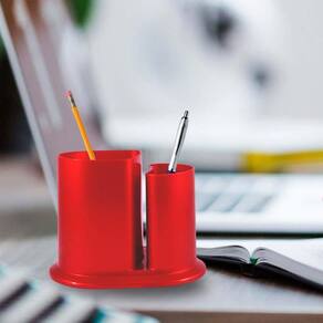 Porta Lápis Duo feito em Plástico Premium PP resistente, cores com pigmento de efeito metalizado, com duas cavidades, espaço para cartão de visita, prático, uma excelente opção para organizar lápis, canetas, marcadores e outros acessórios na mesa de trabalho e/ou estudo. Imagens meramente ilustrativas. Marca: Bb Store