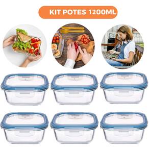 Nome do Produto: Kit 6 Pote de Vidro Hermético Quadrado 1200ml
