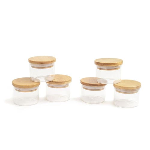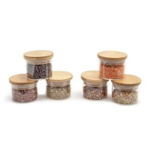 Esse é o kit de 6 potes de mantimentos de vidro borossilicato de 110ml com tampa de bambu da OIKOS. Mestre na conservação: o anel de silicone na tampa garante uma vedação total do pote conservando os alimentos por muito mais tempo.Versátil: não é só de comida que vive esse pote: cabe algodão, pisca pisca, pilhas, dados, acessórios de cabelo, joias, itens de escritório, flores secas, fios e o que mais você quiser guardar.Acabamento especial: a tampa de bambu é selada para suportar umidade. Dá para guardar alimentos mais líquidos e pode até ir na geladeira. Bacana, néTampa flat: sua tampa lisa de bambu é fácil de limpar e otimiza o seu espaço, além de ficar uma graça na cozinha Higiênico e durável: seu corpo de vidro borossilicato é bastante resistente, e a tampa de bambu natural evita a proliferação de bactérias.Design decorativo: funcional e bonito, esse potinho transita muito bem entre os diferentes cômodos da casa, espalhando seu charme por onde quer que vá quarto, banheiro, cozinha, sala, escritório ou lavanderia, você que manda.Fácil de limpar: pode ser lavado na água corrente com esponja e detergente neutro.A tampa produto é selada para proteger contra a umidade, mesmo assim não deve ser imerso em água por muito tempo. Quando não estiver em uso, guardar em local seco e arejado.Medidas do produto:Altura: 5,5CmLargura: 9,5 CmComprimento: 5,5Cm