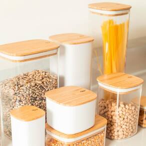 O kit com 6 potes herméticos keep é ideal para quem deseja uma solução completa de organização, trazendo cuidado com os alimentos e praticidade para o dia a dia. Com tampas de bambu, um material 100% renovável, cada pote adiciona sofisticação e sustentabilidade ao seu lar.