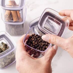 Kit 6 Peças Potes Herméticos Porta Temperos Condimentos Especiarias Block 150ml O Pote Hermético Organizador Block 150ml é perfeito para auxiliar na organização da sua casa, pois armazena diferentes tipos de alimentos secos e temperos. Empilhe, encaixe e enxergue facilmente o conteúdo, mantendo tudo em ordem. Seu design foi pensado para que os potes sejam empilhados e facilmente abertos, com cantos arredondados que proporcionam uma pega confortável e ergonômica. Além de possuir anel de vedação feito em silicone com tecnologia que permite abertura suave e vedação perfeita. Práticos, herméticos e modulares os organizadores block são indispensáveis para auxiliar você na organização da sua cozinha. Ideal para armazenar temperos, frutas secas, grãos, castanhas, especiarias. Descrições Material: Plástico resistente Medidas:altura: 7,5cmLargura: 6.5cmprofundidade: 6.5cm Peso: 90g Marca: Ou Capacidade: 150ml Cores disponiveis: Transparente, Branco, Cinza Contem:6 Pote Porta Tempero Condimento Organizador Vedação Hermético Block 150ml