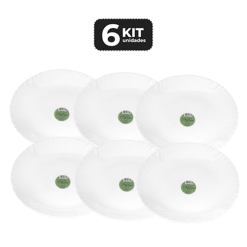 Prato de vidro temperado opaline branco indicado para as principais refeições do dia.