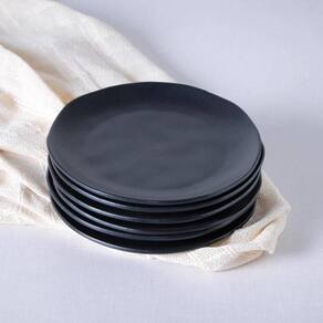 Kit 6 Pratos Orgânicos 19cm Preto de Cerâmica Stoneware Sushi Sashimi Porto Brasil.