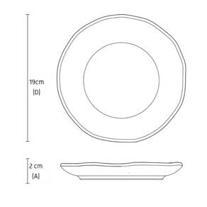 Dimensões de cada prato: 19cm (D) x 2cm (A);