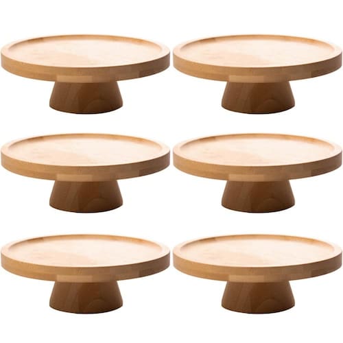 Kit 6 Pratos para Bolo com Pedestal Bambu 20cm Padaria Confeitaria Boleiras Pequenas.