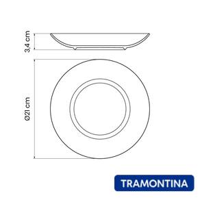 Detalhes do produto Inspirado nas artistas visuais que encantam nosso mundo e enchem de infinitos significados através de suas pinceladas, o prato fundo Tramontina Leonora em porcelana branca 21 centímetros de diâmetro é a escolha perfeita para fazer parte das suas refeições. Ele possui excelente brancura, brilho e é translúcido, ambas características proporcionadas pela porcelana tradicional e exclusiva Tramontina, que possui porosidade próxima de zero e evita a proliferação de fungos e bactérias. Um item com toda a qualidade e beleza Tramontina, que você já conhece e confia