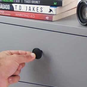 Garantia: 3 anos / Peso total: 210g / Cor predominante: preto fosco / Referência: 7798140545552; Dimensões de cada puxador: 3cm (C) x 3cm (L) x 2,1cm (A); Conteúdo: 6 puxadores.