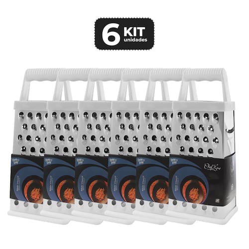 Para o preparo de deliciosas receitas de forma fácil, prática e confortável, o ralador e fatiador 4 faces aço inox que deixam seu manuseio muito mais durabilidade, confortável e seguro.