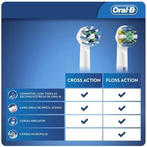 Os ângulos precisos das cabeças das escovas de dentes Oral-B CrossAction atacam a placa dental. O desenho único das cerdas da escova de dentes Oral-B CrossAction tem cerdas em ângulo que estão desenhadas para uma cobertura ótima dos dentes. As cerdas penetram profundamente entre os dentes para eliminar mais placa dental do que uma escova de dentes manual comum, e deixa toda a sua boca limpa. Assim como as escovas manuais, é recomendada a troca do refil a cada 3 meses. * Remove mais placa do que uma escova manual. * Cerdas anguladas para uma cobertura ótima dos dentes. * Contém 2 unidades. * Troque o seu refil a cada 3 meses comparado com escovas de cerdas retas. *Imagens Meramente Ilustrativas.