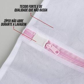 Saco em poliéster para lavar roupas delicadas, ideal para peças íntimas entre outros. Durante a lavagem protege suas roupas do entrelaçamento dos fios e da deformação da máquina de lavar.