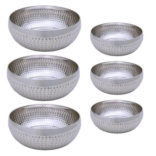 Kit 6 Saladeiras Tigela Bowl Inox Martelado 18 e 25cm