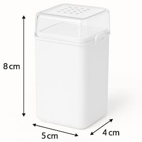 Garantia: 90 dias / Peso de cada: 0,032kg / Cor predominante: branco / Referência: 7794464043927; Dimensões de cada: 5cm (C) x 4cm (L) x 8cm (A); Furos na tampa: 2mm; Capacidade de cada: 70ml; Material: polipropileno (PP); Conteúdo: 6 saleiros pimenteiros; Limpeza e cuidados: não utilizar materiais químicos e abrasivos que possam danificar o produto.