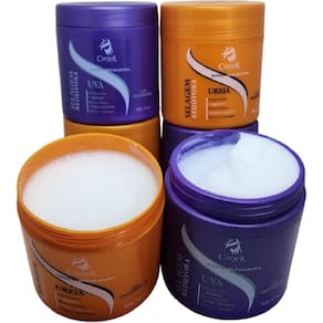 Selante uva cavier cosméticos Composto por aminoacidos, vitaminas e queratina hidrolisada e oleo de semente de uva que além de alisar, tratam os cabelos. Deixando-os com um liso natural, macios, com muito brilho e hidratados. Não amarelam ou desbotam os fios. A selagem redutora uva cavier é um tratamento para recuperar as massas capilares danificadas selando as escamas do cabelo, acabando com o frizz e reduzindo o volume. O tratamento age deixando os cabelos, macios, emolientes, com brilho e hidratados, sendo sua aplicação rapida e mais eficiente que qualquer hidratação. Esse tratamento devolve aos fios a massa capilar perdida ao longo do envelhecimento dos fios e pelas agressoes diarias como: sol, vento, chapinha , secador e outras quimicas. Modo de usar: após lavar os cabelos com anti residuos, retire o excesso da agua com o auxilio de uma toalha e aplique a selagem redutora uva cavier nos cabelos umidos, deixe agir por 10 minutos e proceder com a tecnica convencional de escovação e chapa. opicional . Enxague em seguida. === Selante ureia cavier cosméticos 6 peças É um excelente produto que promove um liso duradouro, é indicado para todos os tipos de cabelos e compativel com qualquer tipo de quimica. O tratamento alisa e reconstroi profundamente a estrutura dos fios, repoe a massa capilar perdida e desemborracha os fios emborrachados. Possui ação antifrizz. Composta por aminoacidos, vitaminas e queratina hidrolizada e ureia que alem de alisar, tratam os cabelos, deixando-os com um liso natural, macios, com muito brilho e hidratados. Não amarelam ou desbotam os fios. Modo de usar: após lavar os cabelos retire o excesso de agua com o auxilio de uma toalha e aplicar o selante de ureia respeitando 1,5 cm da raiz , deixar agir de 15 a 30 minutos e finalizar com escova e prancha opcional . Enxague em seguida.