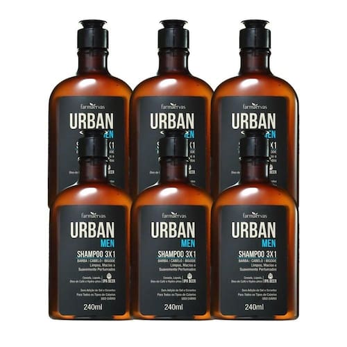 Kit 6 Shampoo 3 em 1 Barba Cabelo Bigode Masculino 240ml Urban Men Farmaervas