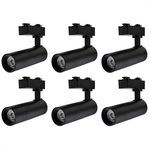 Kit 6 Spot Longo Led MR16 para Trilho Eletrificado Preto 3000K Quente