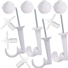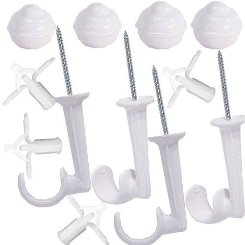6 Suporte de Teto para Varão Simples 28mm para gesso ou DrywallConteúdo:06 suportes para varão simples: 28 mm06 buchas fly para gesso ou Drywall 04 ponteirasAltura da Haste 8 cmAltura total 8,5 cmComposição:Polipropileno PP Marca: Decoribitinga Suporte De Varão Para Cortina De Teto