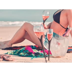 Ideal para espumantes, a inovadora taça Beach foi desenvolvida para usar na praia, com uma haste especial para apoiar na areia!