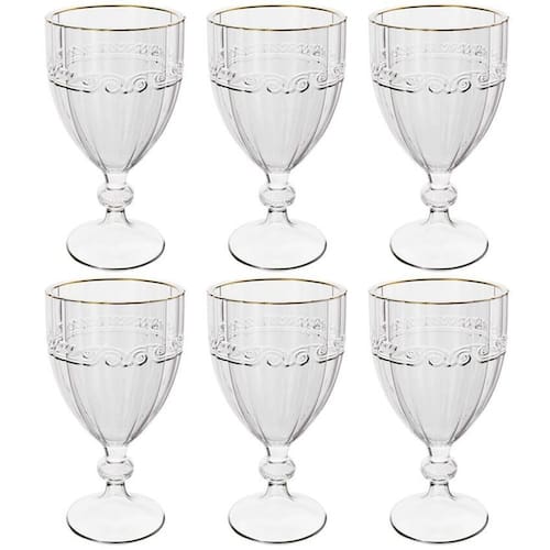 Kit 6 Taças Cristal 330ml Fio de Ouro Imperial Lyor Avulsa Servir Sucos Água Drinks Mesa Posta