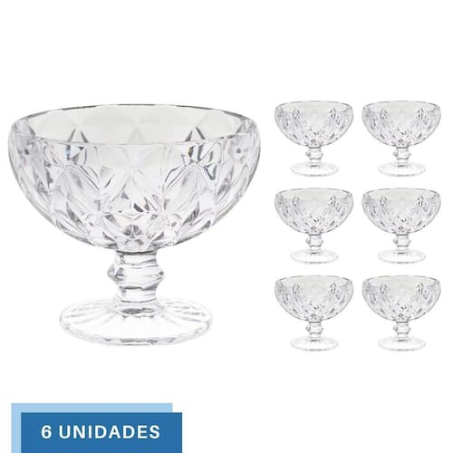 Taça de Sobremesa de 335ml Diamante Com sua capacidade de 335ml, essas taças são ideais para servir porções generosas de sobremesas como sorvetes, mousses, pudins e outras delícias. Além disso, por serem transparentes, permitem que você aprecie a beleza das camadas e texturas de suas sobremesas, tornando a experiência de saboreá-las ainda mais agradável. Estas taças são fáceis de limpar e podem ser utilizadas em diversas ocasiões, proporcionando um toque especial e elegante à sua mesa.