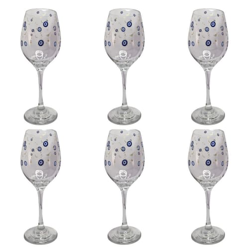 Kit 6 Taças De Vidro Grande 490Ml Vinho Água Olho Grego