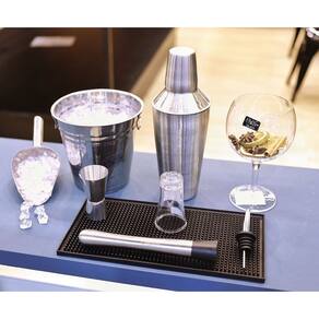 Feito de borracha resistente e durável, este tapete oferece uma superfície antiderrapante para que os utensílios do bar, como copos e garrafas, não escorreguem. Além disso, ele protege a superfície do balcão ou da mesa contra danos e arranhões causados pelos utensílios.