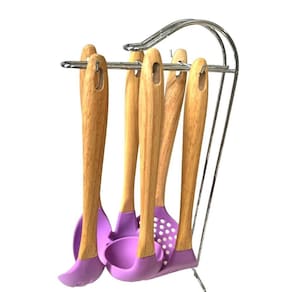 Contém: 1 Concha 30cm; 1 Escumadeira 30cm; 1 Espátula vazada 32cm 1 Colher 32cm 1 Colher vazada 32cm 1 Pegador de arroz vazado 32cm; 1 Porta utensílios para pendurar; Marca: Não Informado