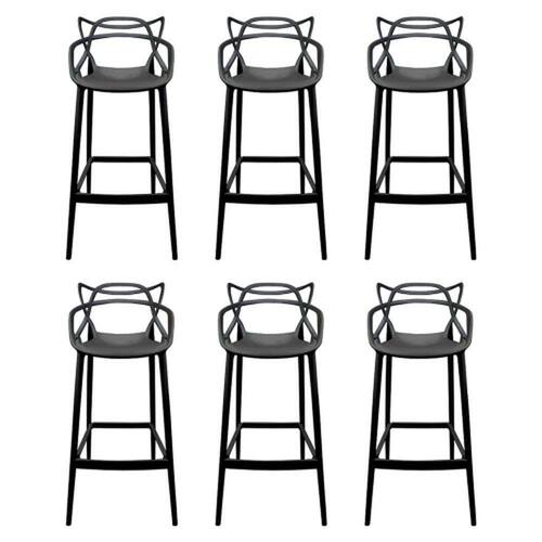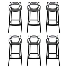 KIT - 6 x Banquetas altas Masters Allegra - PretoBanqueta Allegra: Material: Polipropileno - Altura do encosto: 109 cm - Altura do assento: 77 cm - Largura do assento: 35 cm - Profundidade do assento: 38 cm - Distância entre os apoios de braços: 50 cm - Distância entre os pés: 51 cm - Peso suportado: 120 kg - Garantia: 3 meses.