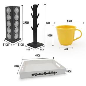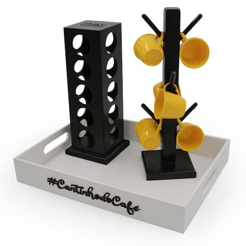 Kit 6 xicara porta capsulas para dolce gusto bandeja acrílico cores Cor xícaras: amarelo Composição do kit;6 xícaras1 bandeja1 suporte de xícaras1 porta capsulas para nespressoXícara 85ml acrílica As xícaras são muito bonitas e esse acrílico traz um charme a mais ao produto, deixando-o mais decorativo para a hora do café. Você pode usar em casa ou no escritório, ter sempre à mão sua xícara para tomar aquele cafezinho, capuccino e até um chocolate quente se estiver com vontade. Capacidade 85mlMaterial - acrílicoAltura - 5,5 cmLargura - 8,5 cm Bandeja cantinho do café versátil e multiuso Feita em mdf de 6mm com pintura em tinta acrílica na cor preta ela é ideal para organizar o seu lar, servir um cafezinho para os amigos, organizar papeis de escritório entre diversas outras utilidades. Bandeja versátil de qualidade, combinando com todos os ambientes no qual estiver Suas medias são40x30x6 externa 38,5 x 28,5 x 5,5 na parte interna Possui as laterais vazadas como uma alça. Suporte porta xícara caneca em 6 pinos xicaras Esse é o produto ideal para decorar o seu tão especial cantinho do café ou até mesmo presentear uma pessoa querida, além da beleza o porta xicaras é feito em mdf que é muito resistente, ideal para xicaras/canecas de até 240ml. Com esse porta xicaras você vai conseguir deixar seus armários muito mais organizados. Medidas suporte:Altura: 36 cmBase: 11x11Peso: 282gMaterial de composição: madeira pinus Porta cápsula vazado a laser nespresso. O nosso porta cápsulas, guarda com segurança e deixa organizado prendendo bem a cápsula sem deixar cair produto bem desenvolvido com muito charme e tons modernos para deixar o ambiente mais bonito Esse porta cápsulas tem ar moderno que mescla os tons e veio da madeira de pinus com o local em preto aonde é encaixado as cápsulas sendo assim um da destaque ao outro organize seu canto do café com as cápsulas sempre a mão e ainda decore o seu ambiente com certeza vai ser uma peça que vai chamar a atenção e tirar elogios Feito em pinus de reflorestamento natural e de mdf com pintura em preto tinta acrílica Comporta 28 capsulas nespressoMedidas 32x10x10 O pinus é natural, não leva verniz e nem seladora. Por se tratar de madeira natural deve haver variações na tonalidade e apresentar veios da madeira em locais distintos. - entregam para todo país Quem somos Marca: Dupétriz