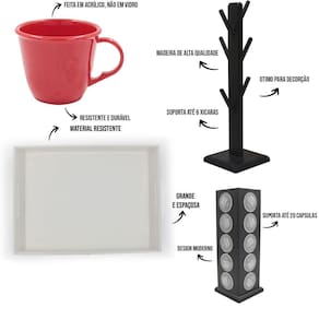 As xícaras são muito bonitas e esse acrílico traz um charme a mais ao produto, deixando-o mais decorativo para a hora do café. Você pode usar em casa ou no escritório, ter sempre à mão sua xícara para tomar aquele cafezinho, capuccino e até um chocolate quente se estiver com vontade.