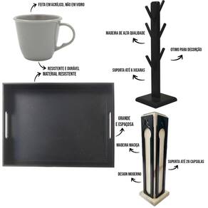 Kit 6 xicara porta capsulas para nespresso bandeja acrílico cores Cor xícaras: cinza Composição do kit; 6 xícaras 1 bandeja 1 suporte de xícaras 1 porta capsulas para nespresso