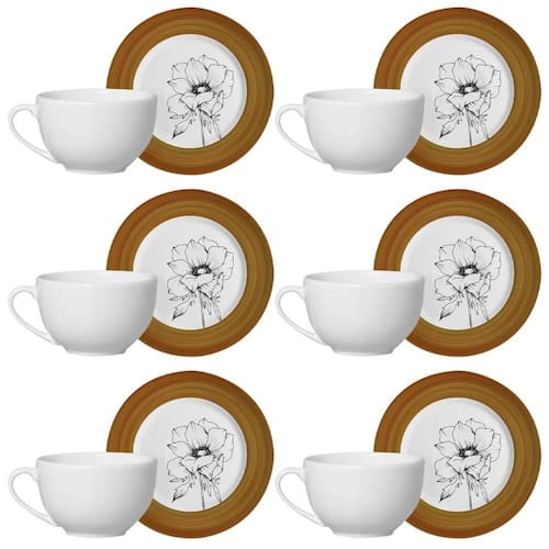Kit 6 Xícaras Cerâmica Chá Café Pires Flor Minimalista 250ml Desperte seus sentidos com o Conjunto de 6 Xícaras de Chá e Café com Pires Flor Minimal. Com generosa capacidade de 250ml, cada xícara é uma obra de arte em cerâmica, adornada com uma elegante estampa floral minimalista. Eleve seu momento de degustação a um novo patamar de sofisticação. Adquira este conjunto exclusivo e floresça com cada gole.
