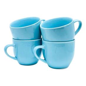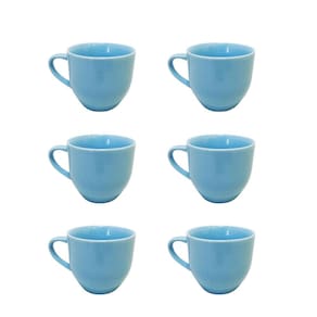 Kit 6 Xicaras Ceramica De Cha Azul 170Ml Com Suporte