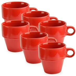 Kit 6 Xícaras Vermelhas de Cerâmica 210ml Empilháveis