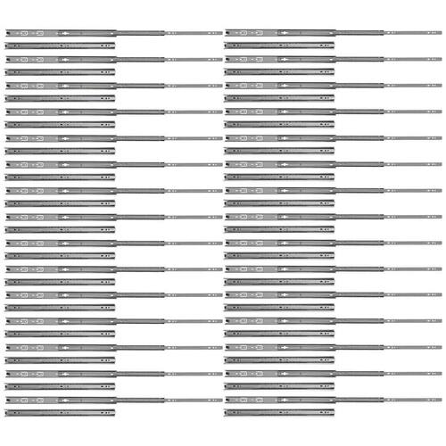 Kit com 60 Corrediças Telescópicas Trilho Zincada 450mm 18Pol. Par para Gaveta Rayco - 30 Pares A Corrediça telescópica 45cmm da Rayco é indicada para gavetas de cozinhas, closets, quartos, banheiros, lavanderias, prateleiras retráteis/extensíveis, bases de teclado e mobiliário em geral. - Marca: Rayco - Referência: R14656-30X - Kit com 60 Corrediças 45cm 30pares - Comprimento: 450mm 18 Polegadas - Largura: 30mm - Espessura: 10mm - Acompanha 1 par de corrediças - Para uso geral - Possibilita a abertura total da gaveta com deslizamento suave, preciso e resistente - Corpo em aço galvanizado - Deslizamento através de de aço - Tipo: telescópica - O par suporta até 20kg - Peso bruto: 510 gramas o par - : 90 dias Marca: Não Informado