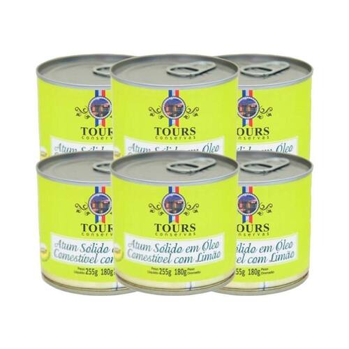 O atum sólido em óleo comestível com limão da tours é um produto artesanal exclusivo no mercado e envasado a mão. Consiste em um lombo de atum selecionado, cortado em segmentos transversais, tendo como líquido de cobertura óleo de soja refinado, salmoura e acompanhado de rodelas de limão.