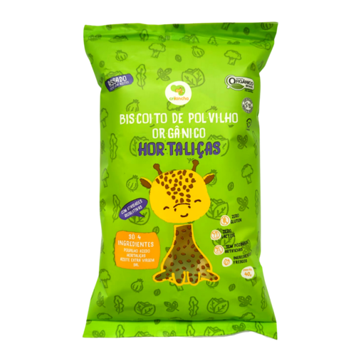 O Biscoito de Polvilho Hortaliças Vegano Orgânico Crilancha é feito de ingredientes orgânicos, veganos, livres de conservantes e seguros para alérgicos.