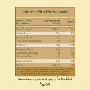 Ingredientes: mix de proteína fava + ervilha , aipim, farinha de mandioca, azeite de oliva extravirgem, farinha integral de amêndoas, lecitina de girassol e/ou lecitina de soja não-transgênica, polvilho azedo, sal marinho integral, goma guar, goma xantana, cebola, alho, açafrão cúrcuma , pimenta do reino em pó, aroma natural de limão, aroma natural extrato de alecrim e acidulante ácido cítrico. Não contém glúten.