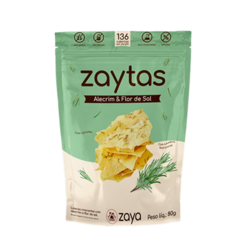 Dentro do pacote do Biscoito Zaytas Alecrim e Flor de Sal Sem Glúten Zaya você vai encontrar uma experiência deliciosa: a refrescância do alecrim aliada à delicadeza da flor de sal, em lascas super crocantes e com sabor irresistível! Zaytas vai bem com patês, pastinhas, tábua de frios ou sozinha: será impossível comer uma só!